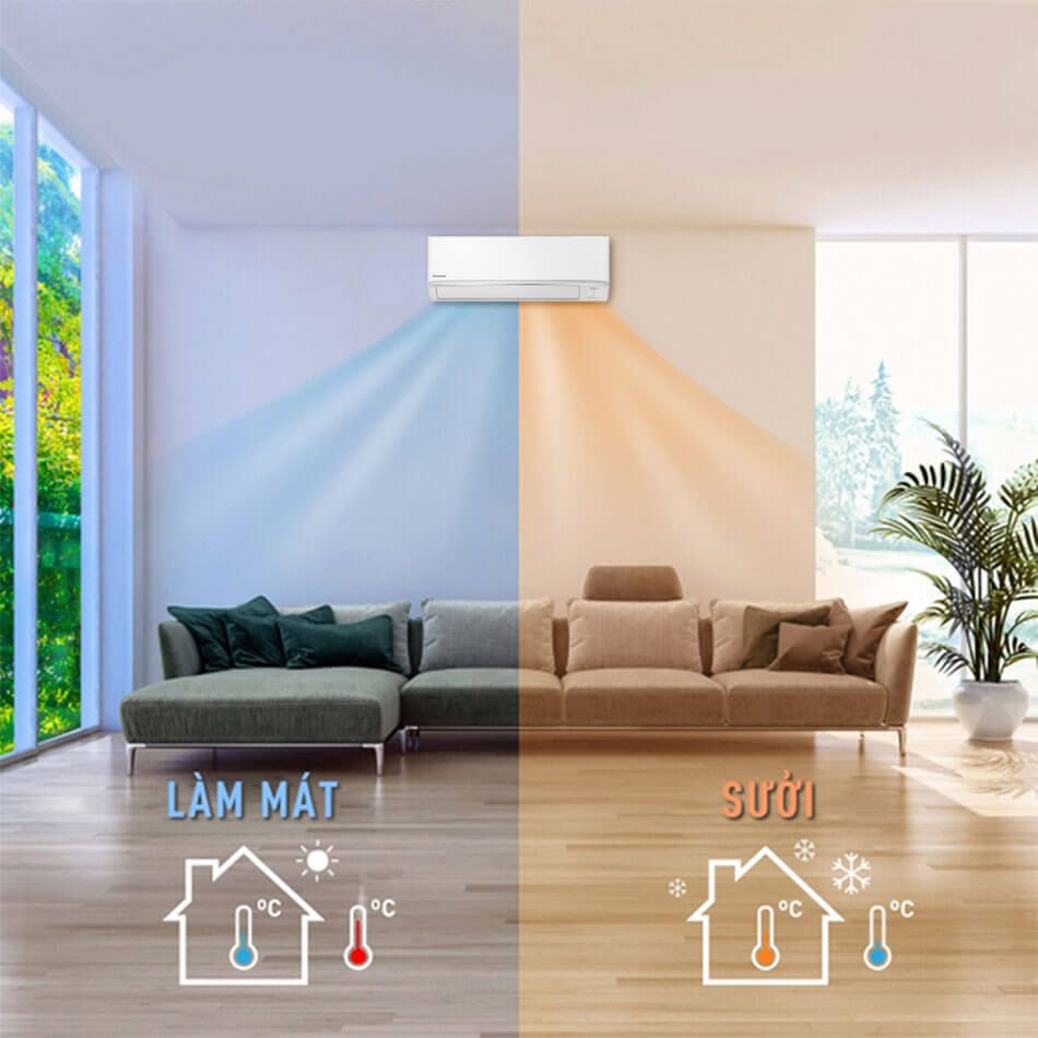 Tích hợp công nghệ Inverter tiên tiến, mang lại hiệu suất làm lạnh và sưởi ấm vượt trội với tiết kiệm năng lượng đáng kể.