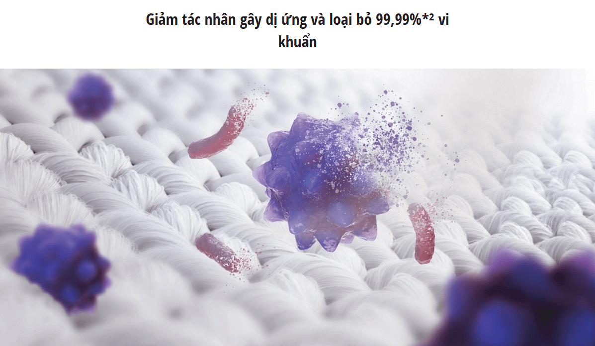 Một trong những điểm nổi bật của máy sấy NH-EH05JD1BV là chương trình sấy diệt khuẩn, giúp loại bỏ tới 99,99% vi khuẩn có trên quần áo.