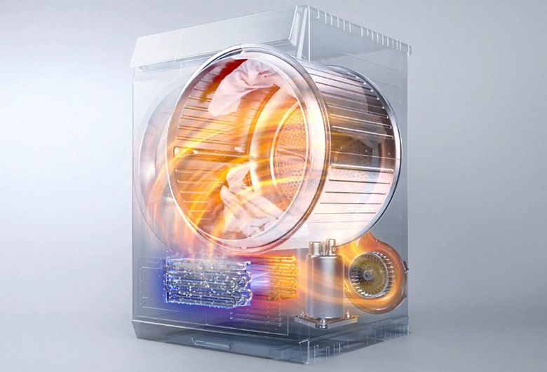 Máy sấy được thiết kế để sấy khô nhẹ nhàng các loại vải khác nhau, giúp tránh co rút sợi vải và giữ nguyên hình dáng ban đầu của quần áo.